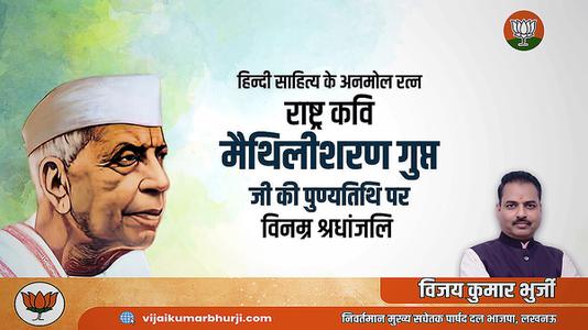 विजय कुमार भुर्जी -श्री मैथिली शरण गुप्त जी की पुण्यतिथि   पर विनम्र श्रद्धांजलि