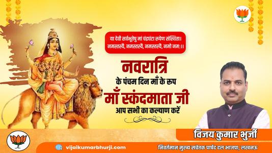 शुभता एवं मंगल के प्रतीक नवरात्रि पर्व के इस मंगल अवसर पर आप सभी देशवासियों, सहयोगियों एवं बंधुजनों को हार्दिक मंगल कामनाएं. सभी पर्वों की भांति यह पर्व भी हम सभी को आध्यात्मिकता एवं नवता की सीख प्रदान करता है. आप सभी के जीवन में सुख व समृद्धि का संचार हो, माँ दुर्गा आपको अच्छा स्वास्थ्य व शक्ति प्रदान करें.