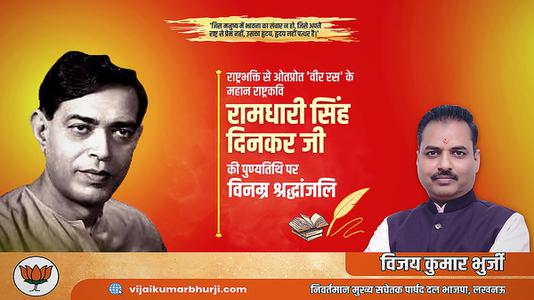 विजय कुमार भुर्जी -श्री रामधारी सिंह दिनकर जी की पुण्यतिथि पर भावभीनी श्रद्धांजलि